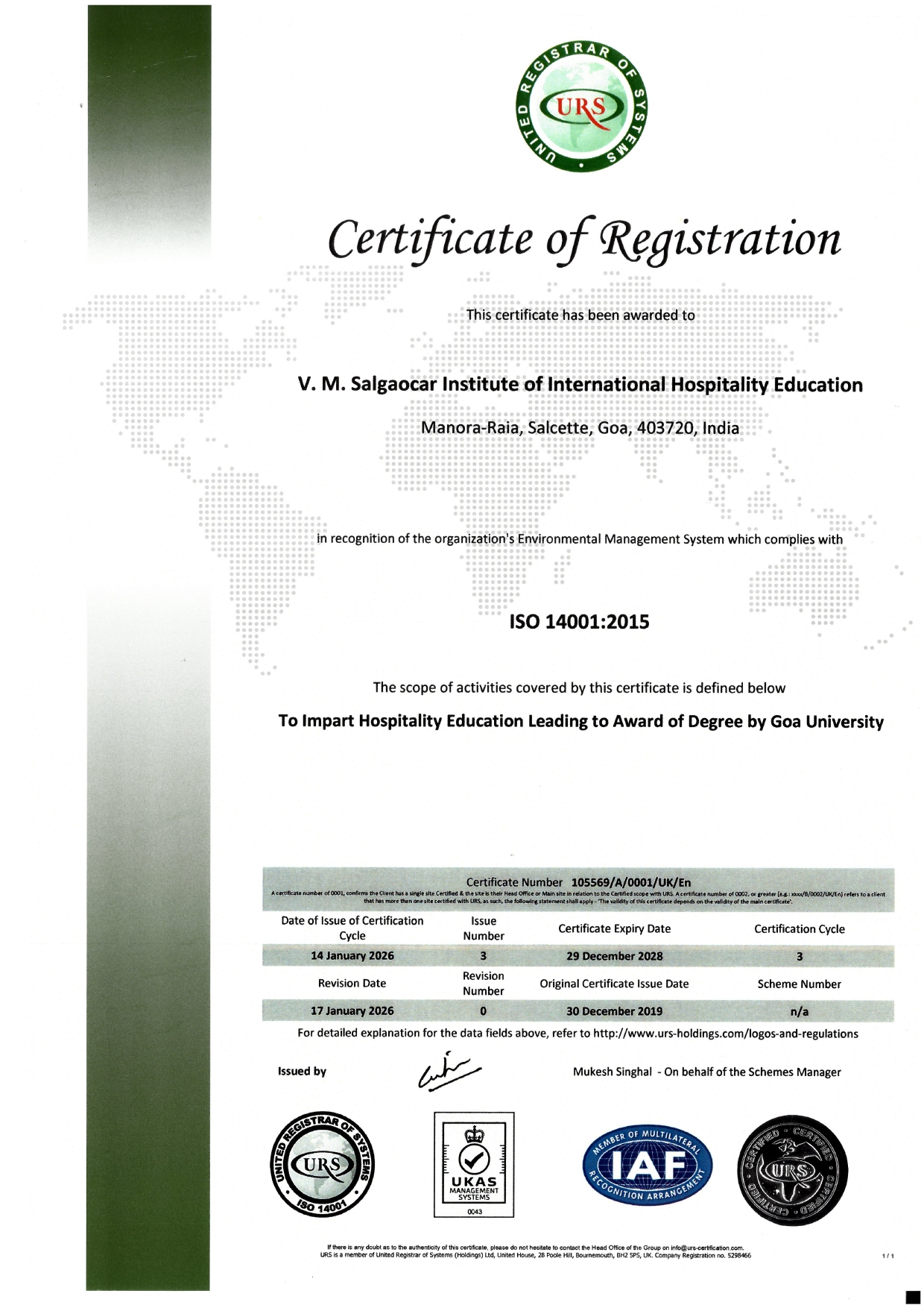 Established in 2014 and affiliated with Goa University, the V. M. Salgaocar Institute of International Hospitality Education (VMSIIHE) has rapidly emerged as a centre of excellence in hospitality education. It is promoted by VMSalgaocar Corporation Pvt. Ltd., a distinguished business group and proud owners of Goa’s first Marriott property, Goa Marriott Resort & Spa, Fairfield by Marriott, and boutique hotels, offering the Institute invaluable industry backing and real-world insight.