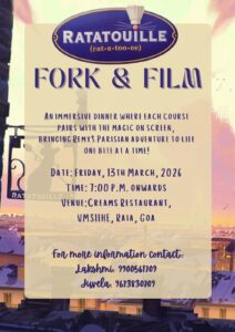 “Anyone can cook….and everyone can eat”. Join us for a Fork and Film dinner experience, featuring “Ratatouille”. Settle in, relax, and savor dishes inspired by the movie’s most memorable moments. Indulge in a thoughtfully curated menu, where each course arrives just as the movie’s moments unfold, blending flavor with emotion. It’s a warm, immersive escape where great food and great film come together beautifully. Bon Appetit!