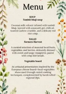 Savor the freshness of nature with our Farm-to-Table Dining Experience, featuring a carefully curated Table d’Hôte menu that highlights the best of locally sourced, organic ingredients, all prepared with farm-fresh flavors in mind. Set in a rustic yet elegant atmosphere, this evening promises a heartwarming connection to the land, the farmers, and the flavors of the earth.